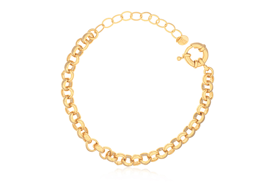 PULSEIRA BANHADA EM OURO, CORRENTE ELO PORTUGUÊS 2,50mm, 17cm COMPRIMENTO, EXTENSOR 5cm COMPRIMENTO E PESO 2,20g