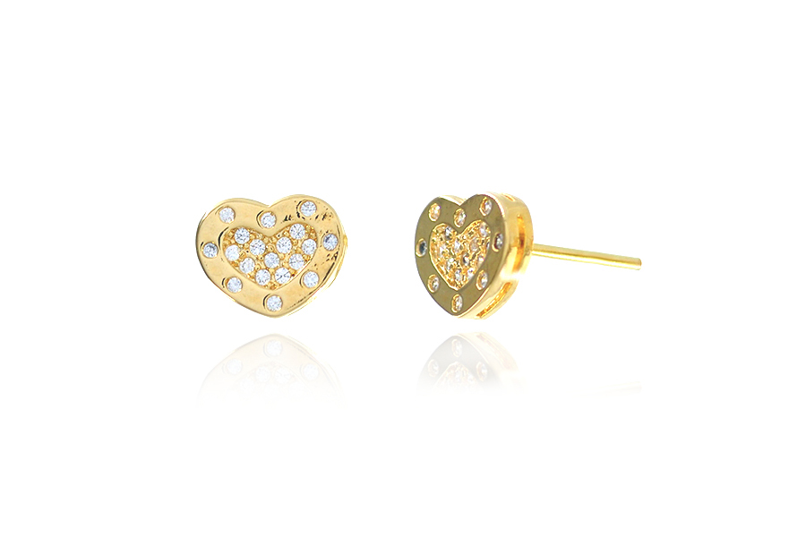 BRINCO BANHADO EM OURO, CORAÇÃO ZIRCÔNIA 6X6mm, PARA QUALQUER COR DE PEDRA