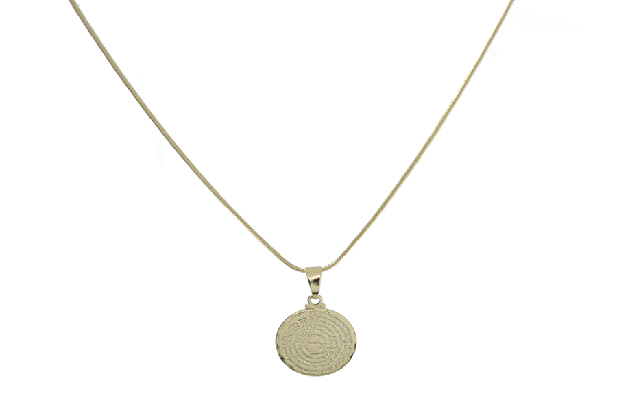 GARGANTILHA BANHADA EM OURO, ELO 1,50mm LARGURA, 60cm COMPRIMENTO E PINGENTE OVAL 18X11mm COM DUAS CRUZES