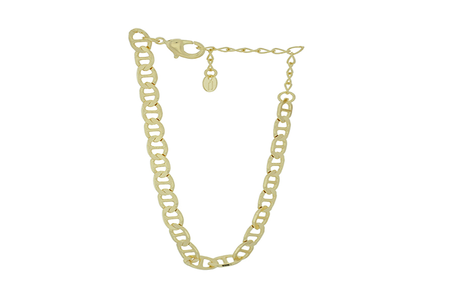 PULSEIRA BANHADA EM OURO, CORRENTE ELO LACRAIA LAMINADA 3mm, 17cm E 18cm COMPRIMENTO, EXTENSOR 5cm COMPRIMENTO E PESO 2,70g