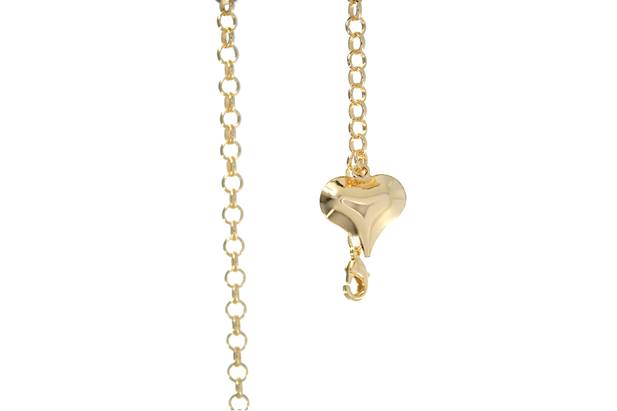 PULSEIRA BANHADA EM OURO, ELO 2,30mm LARGURA, 16cm COMPRIMENTO, EXTENSOR 5cm COMPRIMENTO E CORAÇÃO 7mm LARGURA, PARA QUALQUER COR