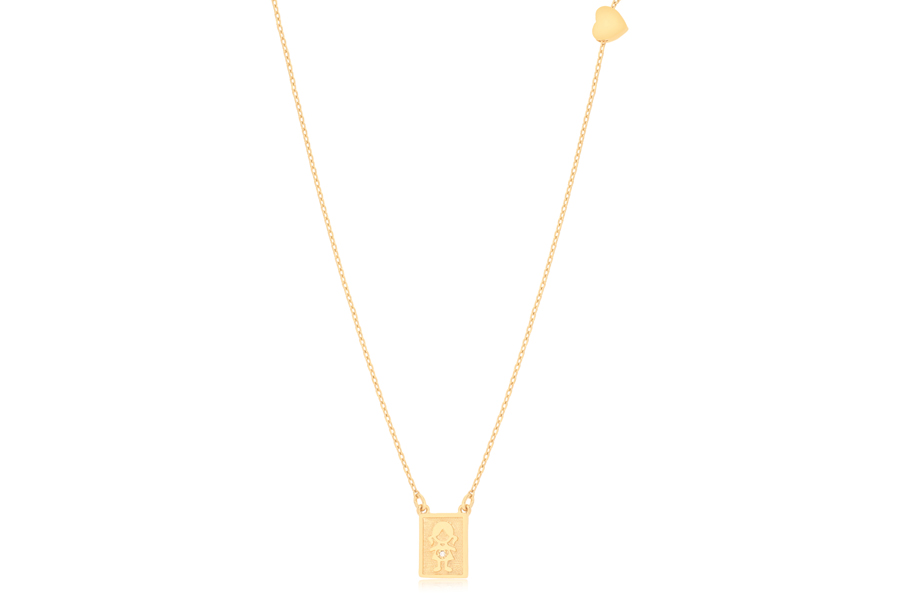 GARGANTILHA EM PRATA, DUPLA, PINGENTE CORAÇÃO E PINGENTE MENINA CRAVEJADA, ELO VENEZIANA, 42,50+5cm COMPRIMENTO