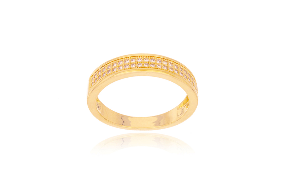 ANEL BANHADO EM OURO, APARADOR DUPLO, COM 2 FILEIRAS DE ZIRCÔNIAS CADA