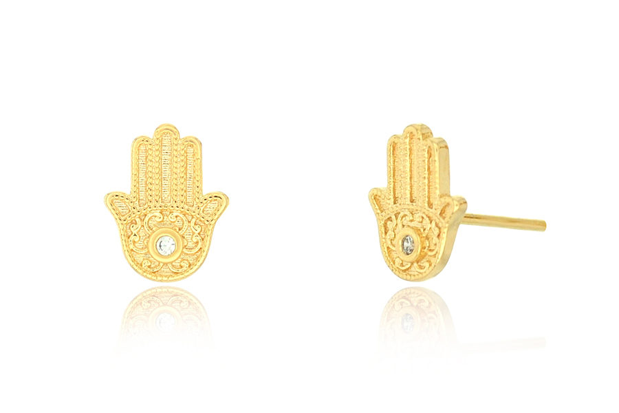 BRINCO EM PRATA, MÃO DE FÁTIMA VAZADA COM 1 ZIRCÔNIA, 6,50mm ALTURA