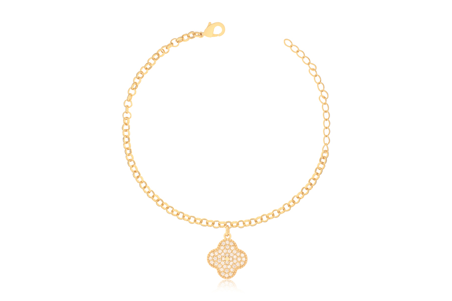 PULSEIRA BANHADA EM OURO, ELO 4mm LARGURA, PIMENTA, CORAÇÃO, CRUZ, OLHO GREGO E PONTO DE LUZ