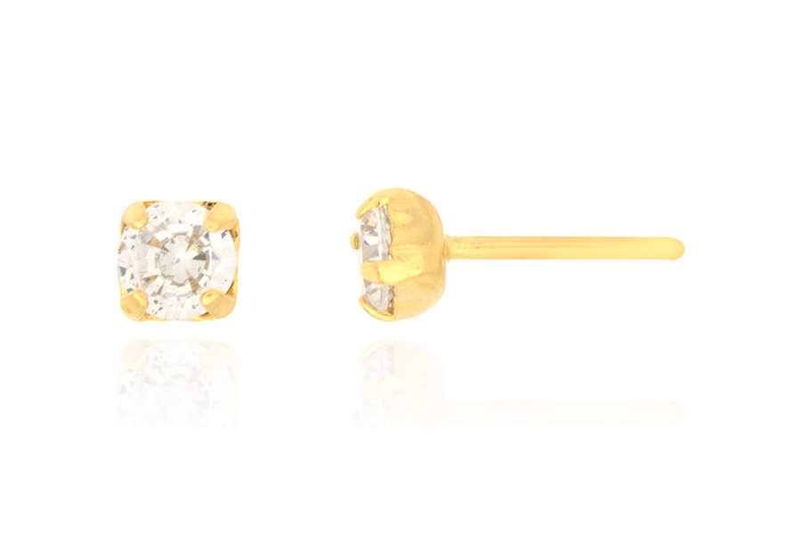 BRINCO BANHADO EM OURO, PONTO DE LUZ 5mm E CRAVAÇÃO INGLESA