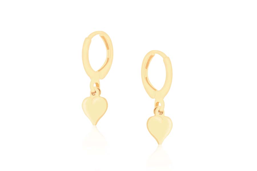 BRINCO BANHADO EM OURO, ARGOLINHA 13mm DIÂMETRO E 7mm LARGURA COM CORAÇÃO