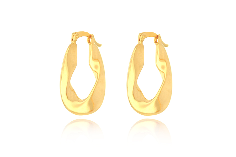 BRINCO BANHADO EM OURO, OVAL 21x15mm E NAVETE TORCIDA 30x16mm, LISO OU ACETINADO, PROVIN OPAC