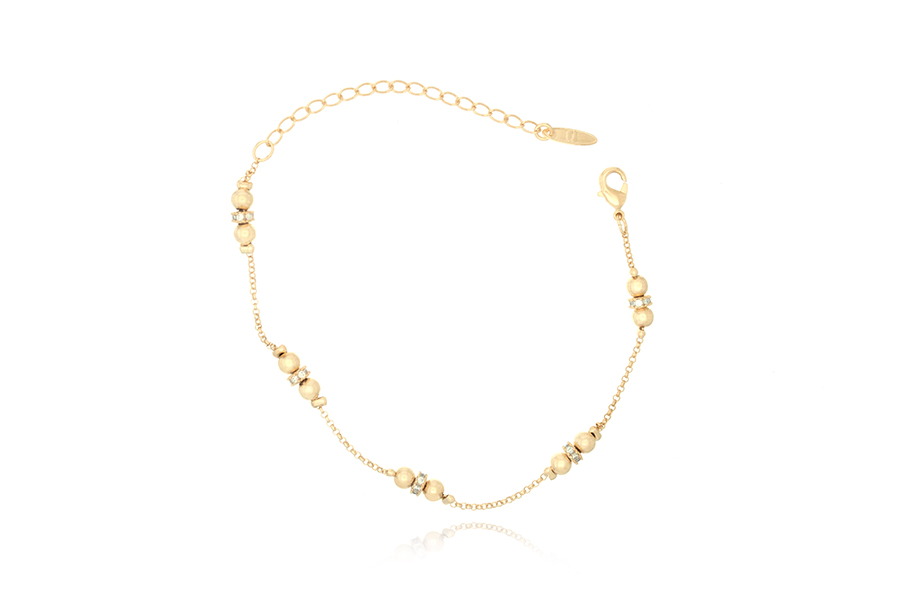 PULSEIRA BANHADA EM OURO, ELO PORTUGUÊS 2,50mm, 16cm COMPRIMENTO, PONTO DE LUZ 4,50mm E PINGENTE PAZ 11mm DIÂMETRO