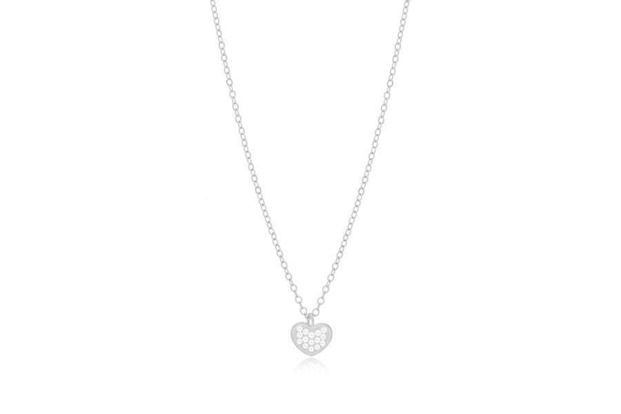CHOKER EM PRATA, CORAÇÃO 4,60mm ALTURA, COM 1 ZIRCÔNIA CENTRAL, ELO CADEADO, 35+5cm COMPRIMENTO