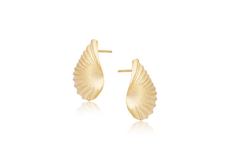 BRINCO BANHADO EM OURO, FLOR 22mm LARGURA COM PÉROLA SHELL 4mm E PONTO DE LUZ 4,50mm LARGURA