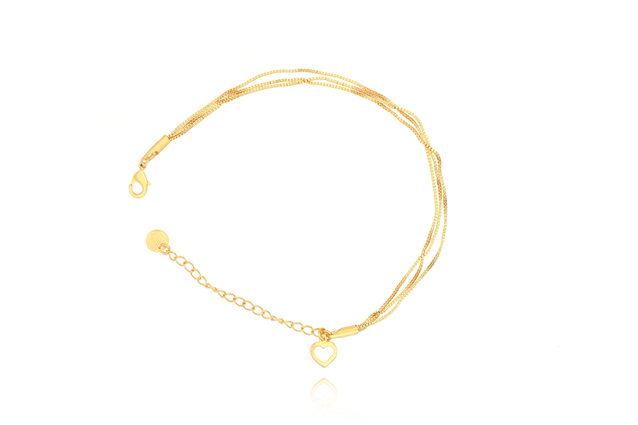 PULSEIRA BANHADA EM OURO, ELO OVAL 9,50x6,50mm, CORAÇÃO 9mm LARGURA, E SAPATO 15mm COMPRIMENTO
