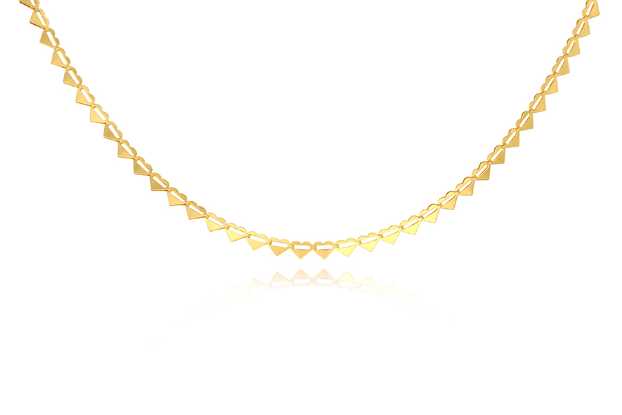 GARGANTILHA BANHADA EM OURO, ELO VENEZIANA 0,80mm, 40cm COMPRIMENTO, EXTENSOR 10cm COMPRIMENTO, DOIS CORAÇÕES
