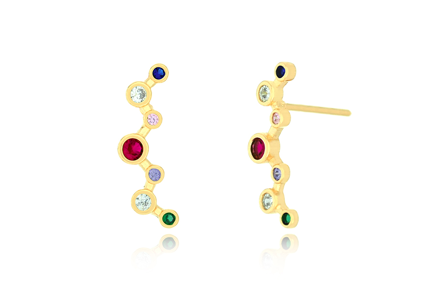 BRINCO EM PRATA, 3 CARREIRAS ZIRCÔNIAS RAINBOWS
