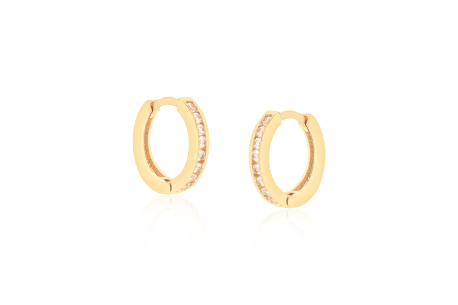 BRINCO BANHADO EM RÓDIO BRANCO, ARGOLINHA 16mm DIÂMETRO, 9mm LARGURA COM 59 ZIRCÔNIAS