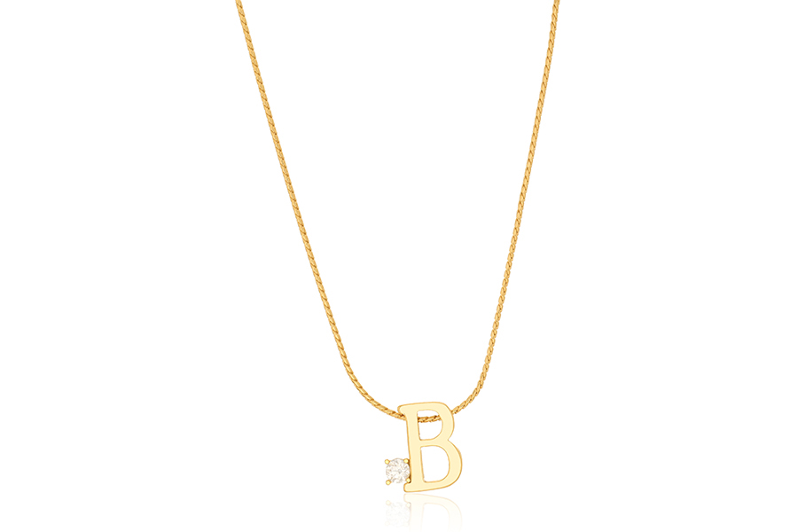 GARGANTILHA BANHADA EM OURO, ELO 0,70mm, 40cm COMPRIMENTO, EXTENSOR 10cm COMPRIMENTO, LETRA F, 11mm ALTURA E PONTO DE LUZ 3mm
