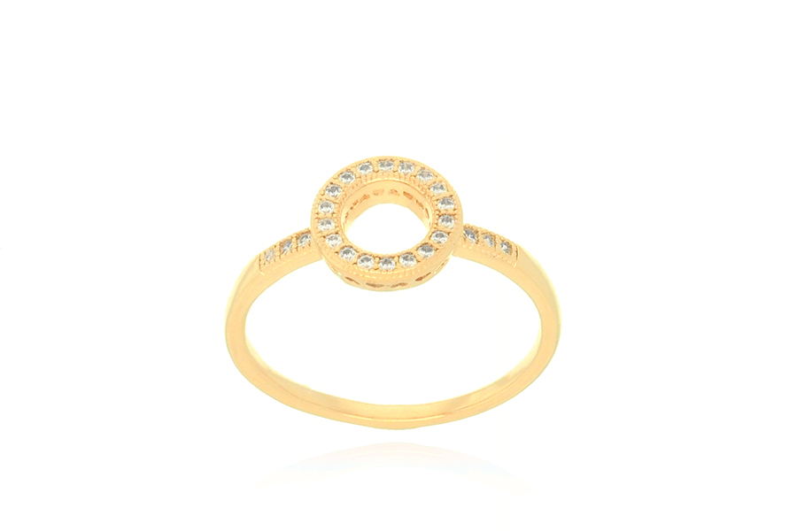ANEL BANHADO EM OURO, ZIRCÔNIAS 3 E 2mm