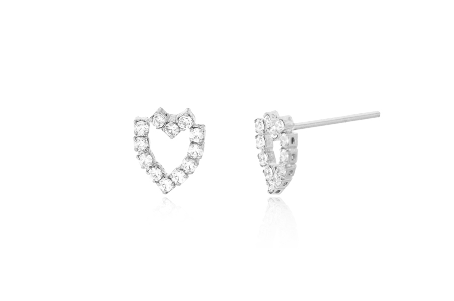 BRINCO EM PRATA, PONTO DE LUZ CORAÇÃO 6mm ALTURA