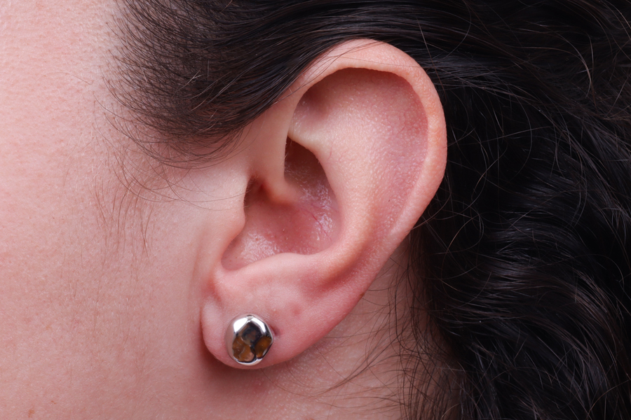 BRINCO EM PRATA, REDONDO 9mm DIÂMETRO, COM BANHO DE RÓDIO BRANCO, COLEÇÃO AURA