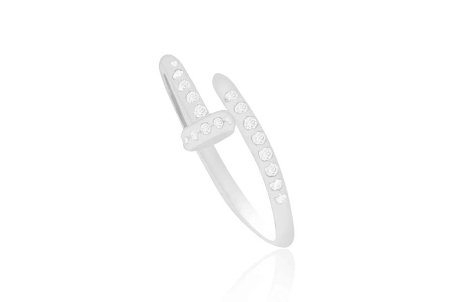 ANEL EM PRATA, ABERTO, COROA COM ZIRCÔNIAS, 6mm LARGURA