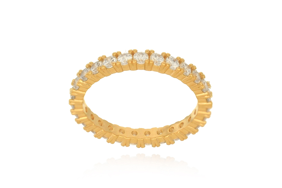 ANEL BANHADO EM OURO, APARADOR DUPLO COM 2 FILEIRAS DE ZIRCÔNIAS CADA