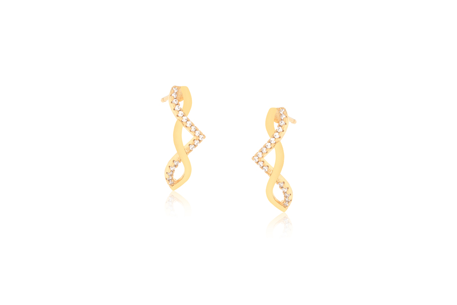BRINCO BANHADO EM OURO, PONTO DE LUZ 5mm E CRAVAÇÃO INGLESA