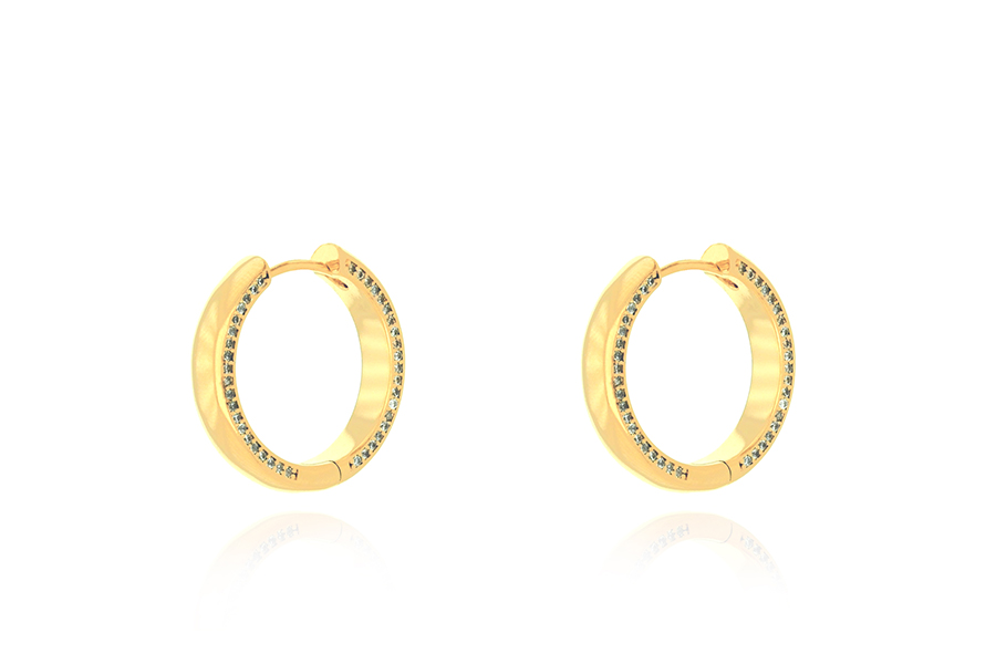 BRINCO BANHADO EM OURO, QUADRADO 6,50mm, COM ZIRCÔNIAS NAS LATERAIS
