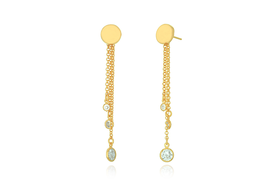 BRINCO BANHADO EM OURO, COM PENDURICOS E PONTO DE LUZ 5mm