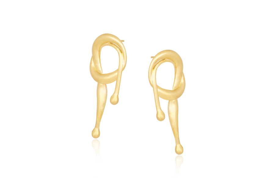 BRINCO BANHADO EM OURO, DUAS NAVETES TORCIDAS 32x11mm, LISO OU ACETINADO, PROVIN OPAC