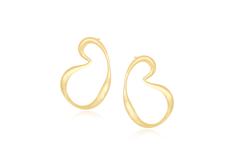 BRINCO BANHADO EM OURO, BASE OVAL E PENDENTE GOTA DETALHADA 21mm LARGURA