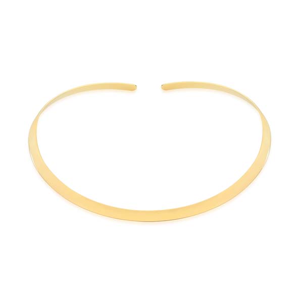 CHOKER BANHADO EM OURO, ELO 1,50mm, 35cm COMPRIMENTO, EXTENSOR 10cm COMPRIMENTO E PINGENTE OVAL IRREGULAR 8,50mm COMPRIMENTO, LISO OU ACETINADO
