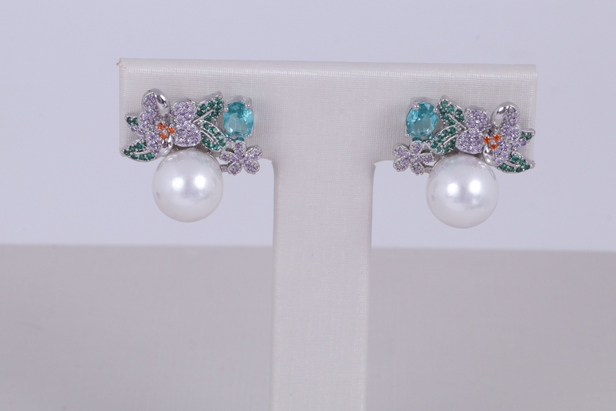 BRINCO EM PRATA, FLOR 6mm DIÂMETRO COM 5 ZIRCÔNIAS