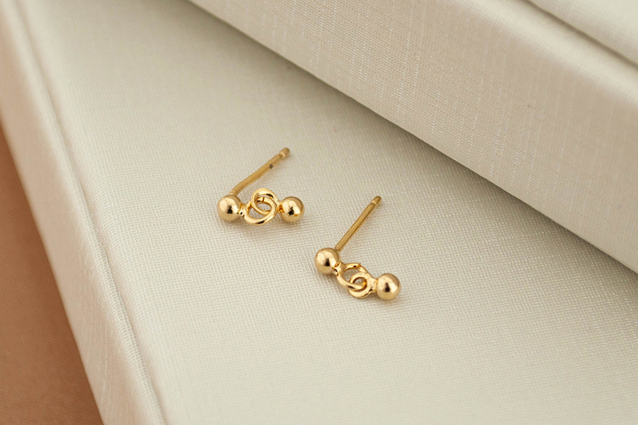 BRINCO BANHADO EM OURO, INFANTIL, PONTO DE LUZ 2,50mm E ESFERA 3,50mm, COM TARRAXA BABY