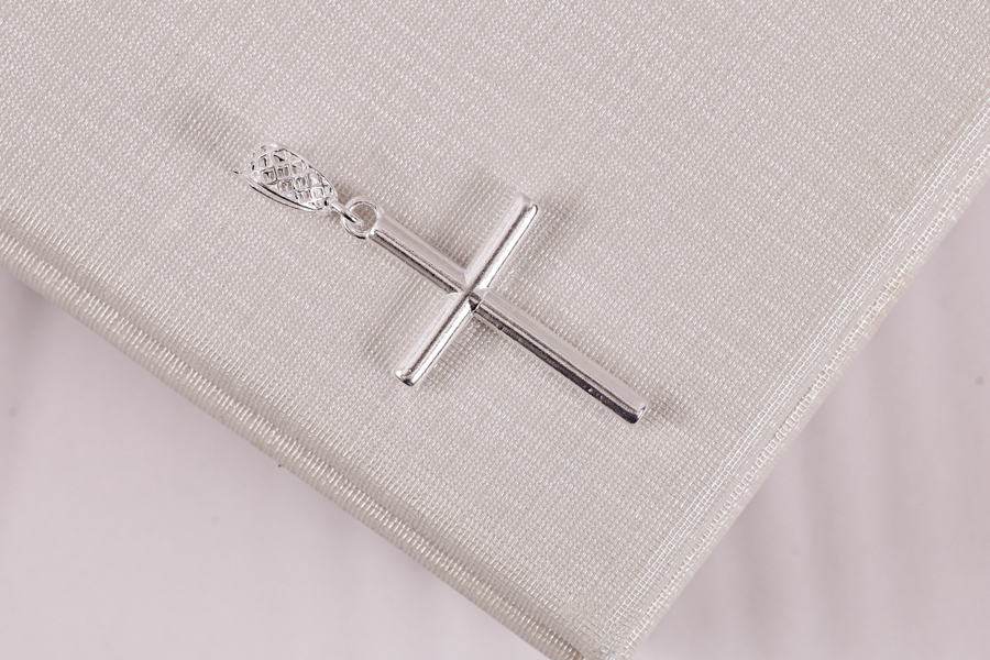 PINGENTE EM PRATA, CRUZ CRAVEJADA 18x10mm