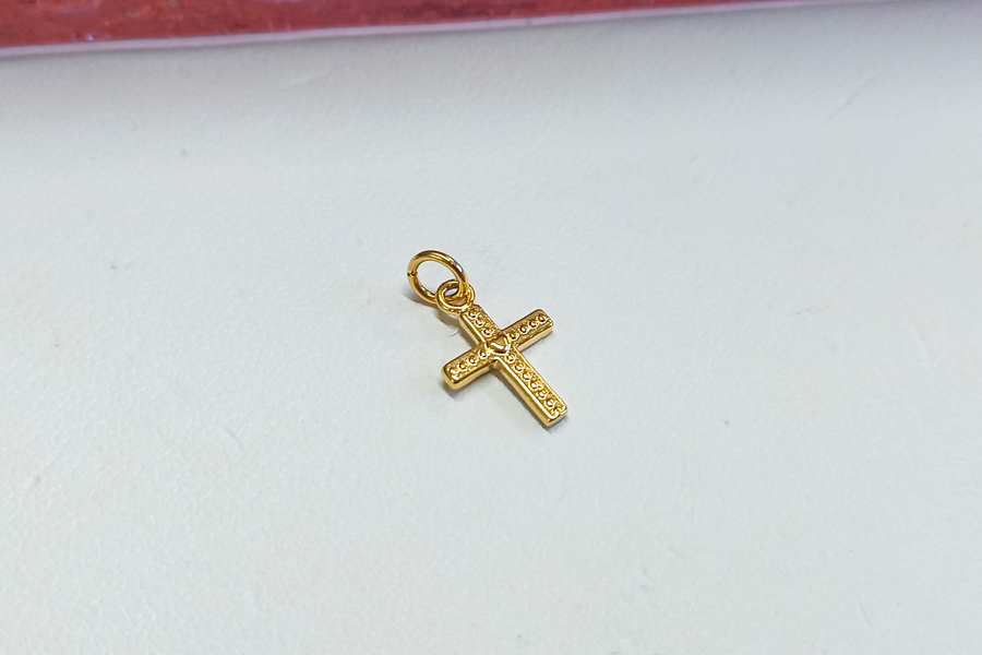 PINGENTE BANHADO EM OURO, 15mm DE DIÂMETRO, CRUZ