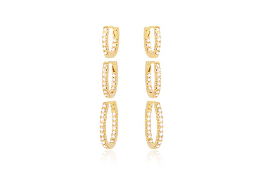 BRINCO BANHADO EM OURO, OVAL 7X5mm, COM 11 ZIRCÔNIAS BRANCAS OU NEGRAS