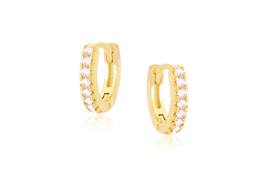 BRINCO BANHADO EM OURO, 21mm ALTURA COM 54 ZIRCÔNIAS