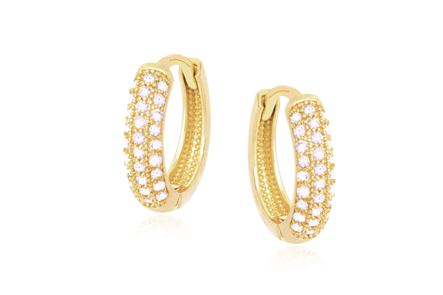 BRINCO BANHADO EM OURO, PONTO DE LUZ 5mm E CRAVAÇÃO INGLESA