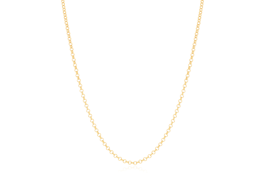 CORRENTE BANHADA EM OURO, ELO PORTUGUÊS 2,50mm, 45cm COMPRIMENTO, EXTENSOR 5cm COMPRIMENTO E PESO 3,80g