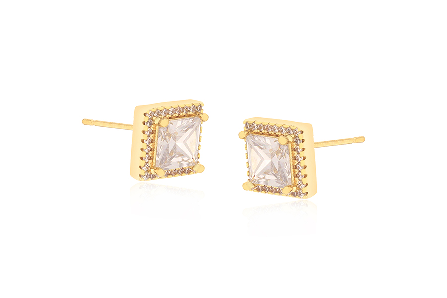BRINCO EM PRATA, QUADRADO VAZADO COM 1 LADO CRAVEJADO, 5mm