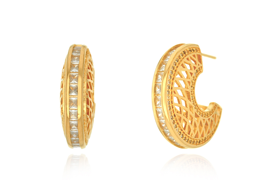 BRINCO BANHADO EM OURO, CORAÇÃO ZIRCÔNIA 8X8mm, PARA QUALQUER COR DE PEDRA