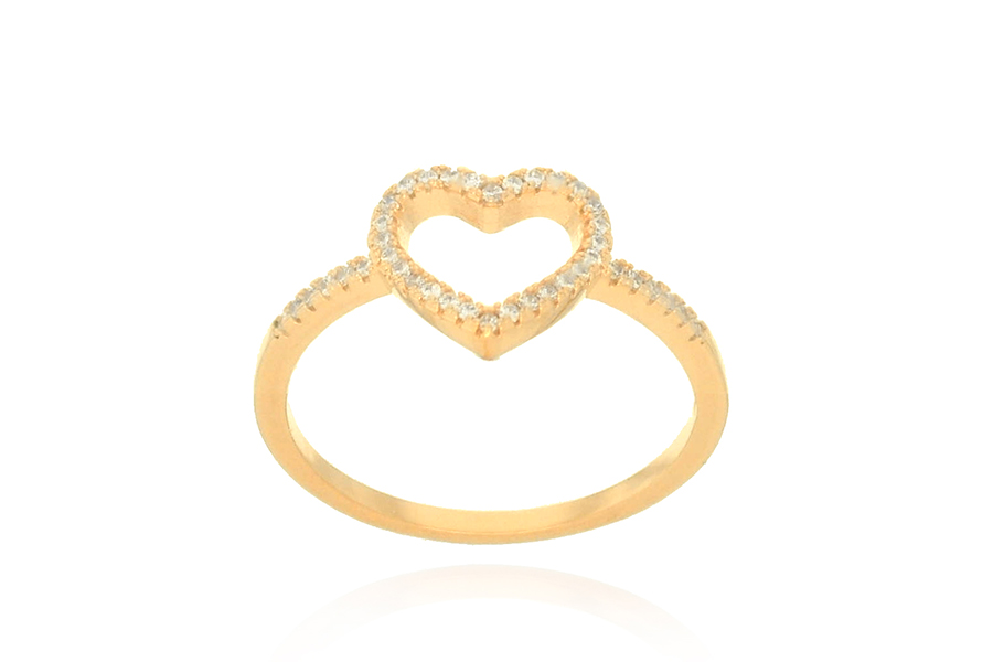 ANEL BANHADO EM OURO, COM 16 ZIRCÔNIAS E CORAÇÃO
