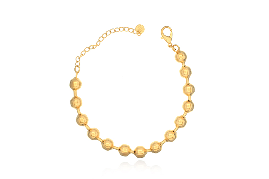 PULSEIRA BANHADO EM OURO BRACELETE INFANTIL 3mm LARGURA 550cm COMPRIMENTO COM PÉROLA SHELL 6mm DIÂMETRO E 10 ARGOLINHAS