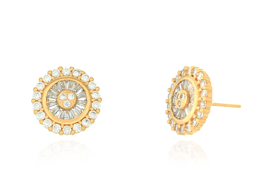 BRINCO BANHADO EM OURO, ZIRCÔNIA 5mm, BORDA COM ZIRCÔNIAS PEQUENAS, PARA QUALQUER COR DE PEDRA