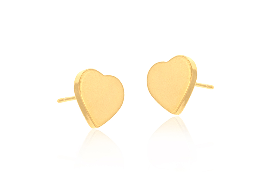 BRINCO BANHADO EM OURO, INFANTIL, CORAÇÃO 4,50mm LARGURA, COM TARRAXA BABY