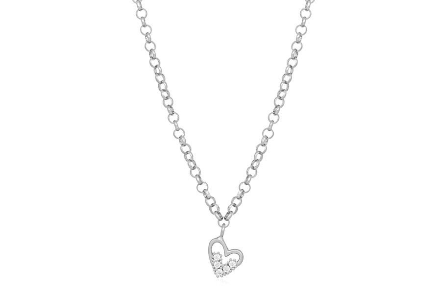 GARGANTILHA BANHADA EM PRATA LEVE, DUPLA, ELO 1,50mm ESPESSURA, PONTO DE LUZ 5mm E CORAÇÃO VAZADO 15,50mm LARGURA COM PATA