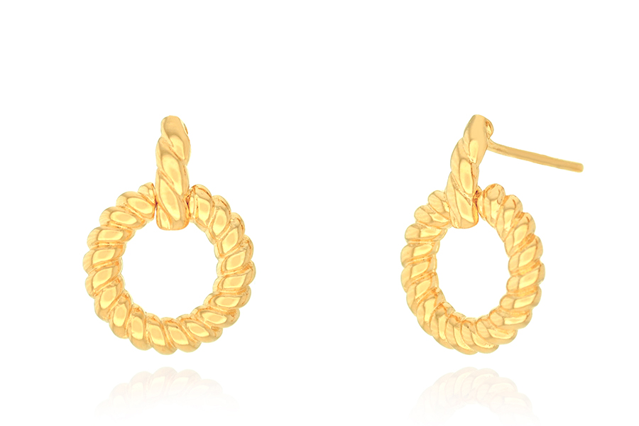 BRINCO BANHADO EM OURO, BASE REDONDA 21mm E PENDENTE ARO 29mm