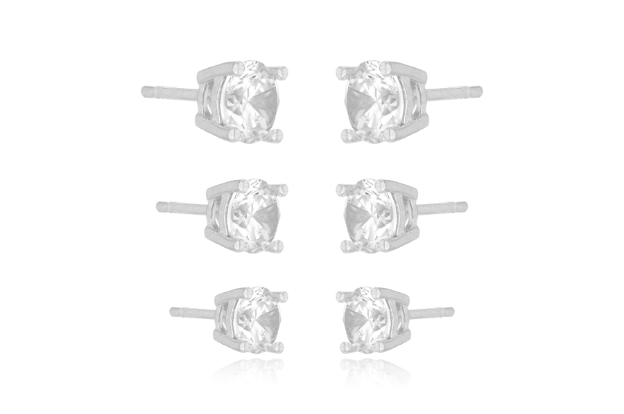 CONJUNTO EM PRATA, TRIO DE BRINCOS, ESFERAS 2mm, 3mm E 4mm