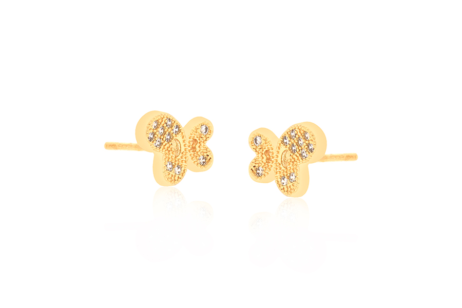 BRINCO EM PRATA, BORBOLETA METADE CRAVEJADA E OUTRA METADE VAZADA, 8mm ALTURA