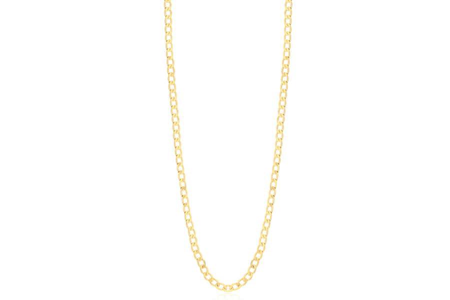 CORRENTE BANHADA EM OURO, ELO PORTUGUÊS 3mm, 40cm COMPRIMENTO, EXTENSOR 5cm COMPRIMENTO E PESO 7,10g